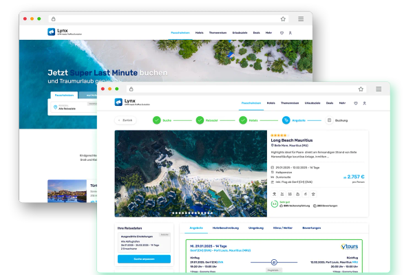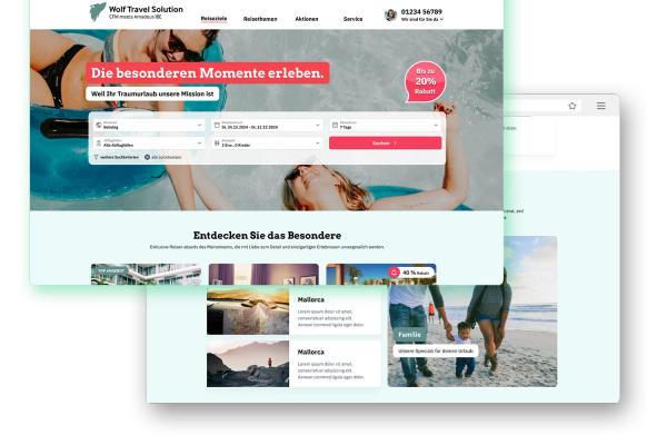 С нашата цялостна система предлагаме модерна и гъвкава платформа с тиизъри за оферти, маски за търсене, страници със списъци и детайлни страници, която покрива всички изисквания на онлайн туристически агенции (OTA), туроператори и туристически агенции. Нашето решение комбинира мощната Amadeus Leisure IBE Advanced с лесната за ползване CMS Raccoon от CFM, за да оптимизира изживяванията при резервация и да опрости управлението.